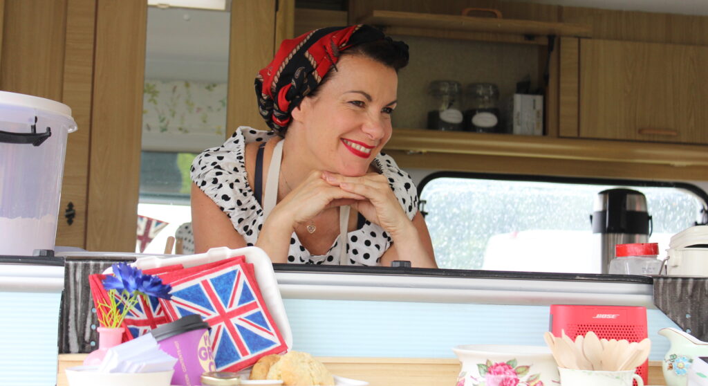 We are a vintage cafĂ© serving cream tea, cakes and sandwiches the old-fashioned way. Everything is baked by us and we love to experiment with seasonal flavours. We also love 1940âs style and so we like to dress up and recreate the street party vibe of the good old days. Our little business started in 2019 during lockdown when we upcycled a much-loved family caravan into a mobile kitchen. A 5 hygiene rating, several farmerâs markets and a whole bunch of crockery later and here we are at Weyfest for the second year running. Veteran Weyfesters may have joined us last year in the Old Kiln Stage area where we became firm friends with this gorgeous festival. What a great place to have our teashop! A visit to the caravan is a step into the world of Melâs Marvellous Cakes where you can find Mel baking and serving customers and Mike prepping food and fixing all the bits of the caravan that drop off during transit! He also makes a mean cup of loose leaf tea and heâs excellent at grinding coffee beans. Alongside the Weyfest environmental ethos, we are determined eco-warriors and so you will find us using compostable take away packaging, continuing the tradition of mug-hire and recycling as much as possible. Our menu includes loose leaf tea, freshly ground coffee, toasted sandwiches, cakes and cream teas. We include treats suitable for all you lovely vegan and gluten-free party people too. So, we look forward to seeing you at the caravan where you can either grab a take away, a mug or book a table in our vintage cafĂ© area. Our dancing shoes are ready and waiting!